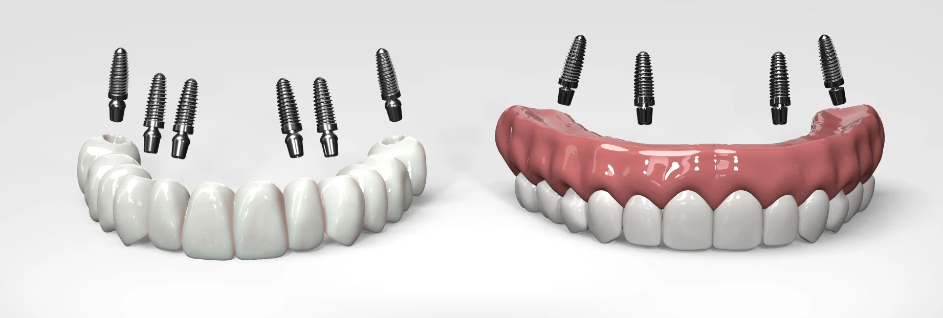 Replaces all of your top OR bottom teeth with a secure denture held in by 4 dental implants.