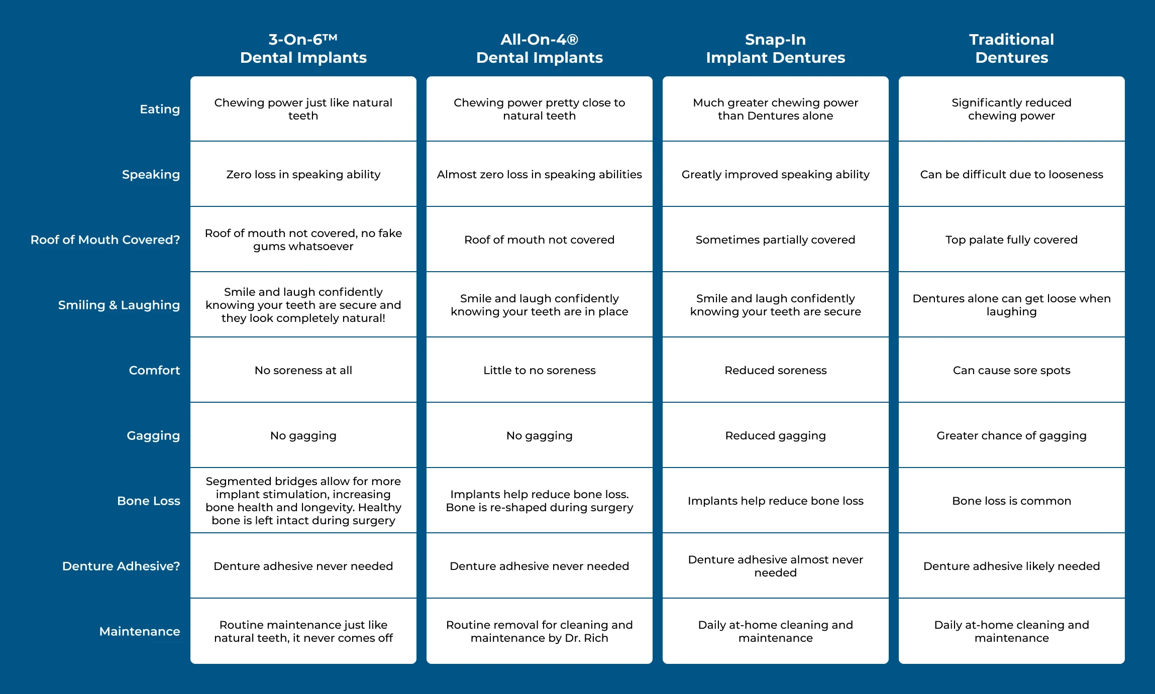 While traditional dentures typically look nice and are usually the most cost-effective way to replace failing or missing teeth, they can leave a lot to be desired in terms of function, stability, and chewing ability.